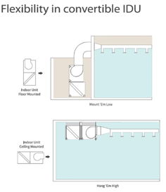 - The low height indoor unit design gives you 20% more vertical space for your ceiling designs
